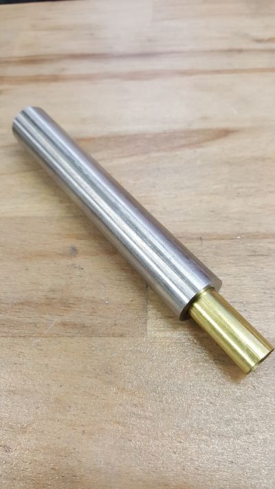 29. Auf der Vorderseite wurde eine Gewindehülse in dass Messingrörchen eingepresst.