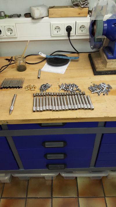 7. Nun konnte die Arbeit an den Kugelschreiberrohlingen beginnen.