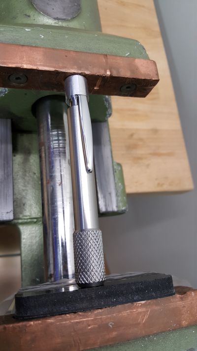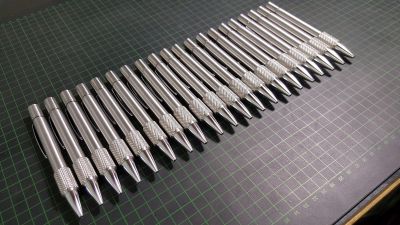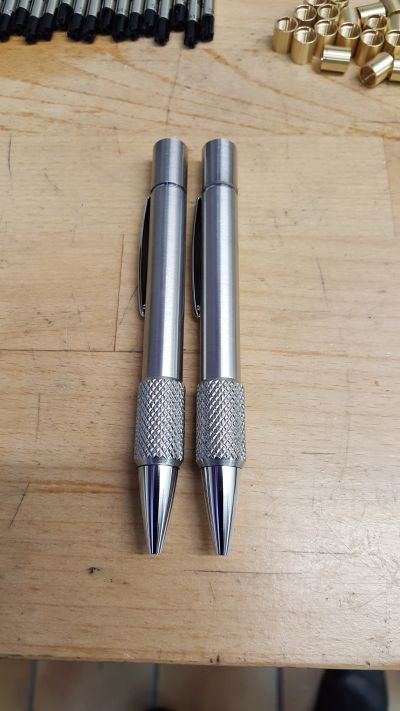 22. Nun wurde der Außendurchmesser der Kugelschreiber auf das gleiche Maß wie die Endkappen gebracht. |